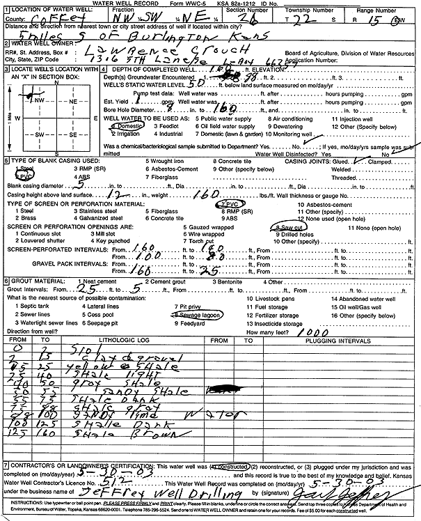 Crouch, Lawrence | 160 ft. | 50 ft. | 1 gpm. | Domestic | Constructed | 30-May-2003 | Scan | |