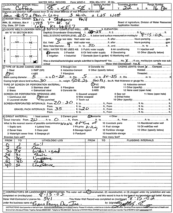 Hall, Darin and Stephanie | 35 ft. | 20 ft. | 5 gpm. | Domestic | Constructed | 15-Aug-2002 | Scan | |