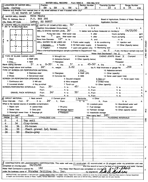 Meets, Mike | 50 ft. | 26 ft. | 7 gpm. | Domestic | Constructed | 25-Apr-2000 | Scan | |