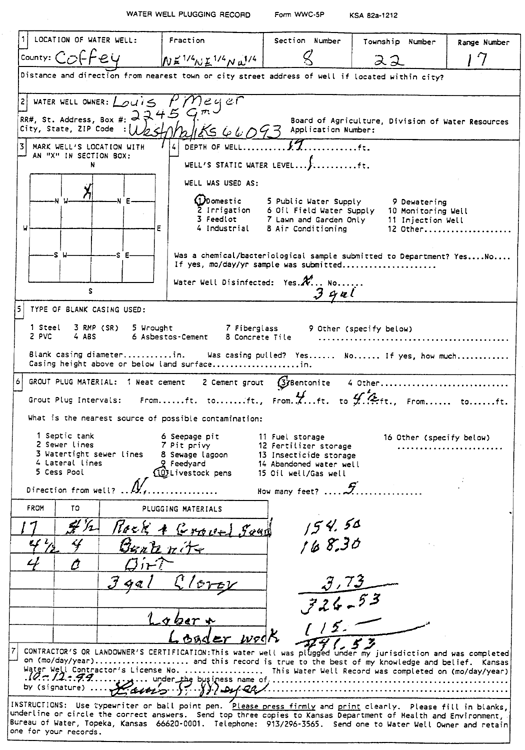 Meyer, Louis P. | 19 ft. | 1 ft. | Domestic | Plugged | 12-Oct-1999 | Scan | ||