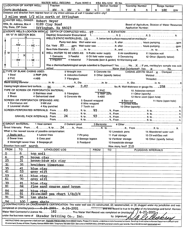 Meyer, Robert | 97 ft. | 15 ft. | 80 gpm. | Domestic | Constructed | 24-Apr-2001 | Scan | |