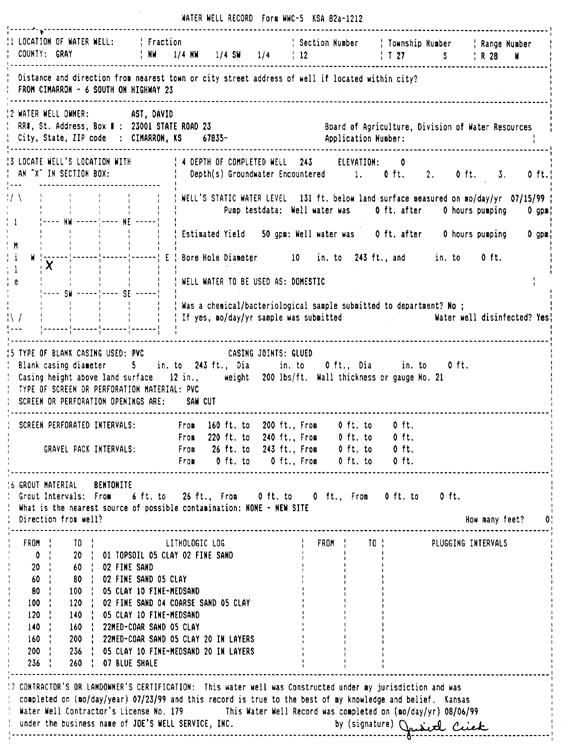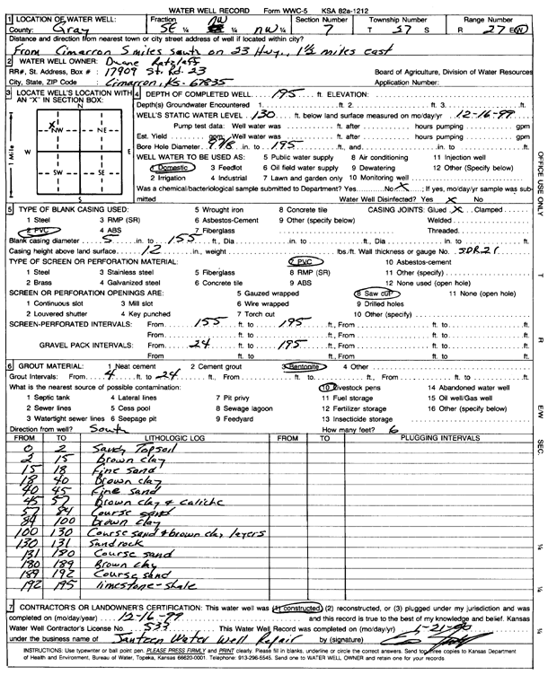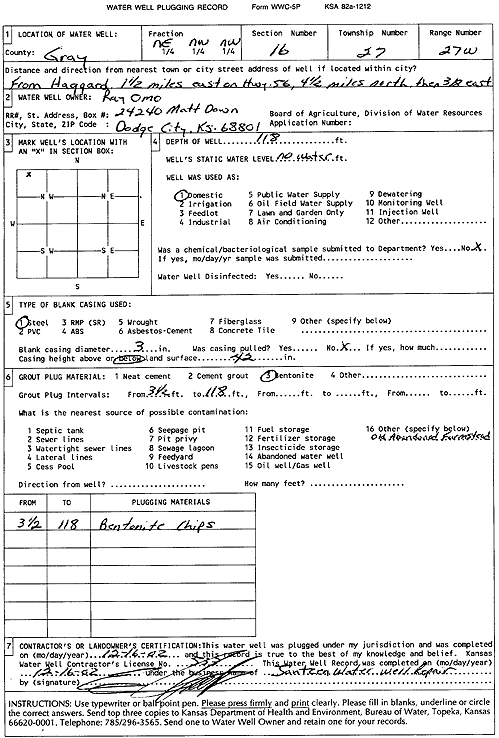 Ratzlaff, Duane | 123 ft. | 118 ft. | Domestic | Plugged | 29-Oct-1997 | |||