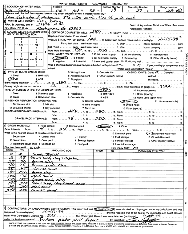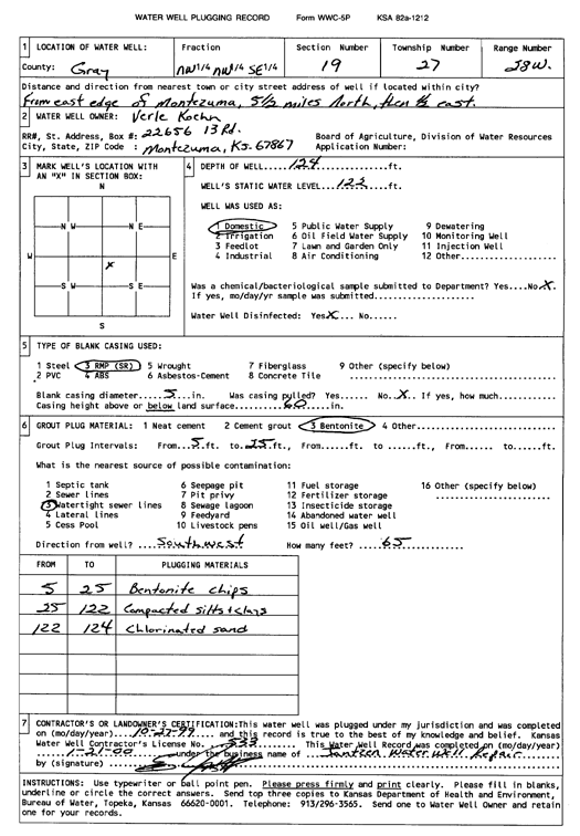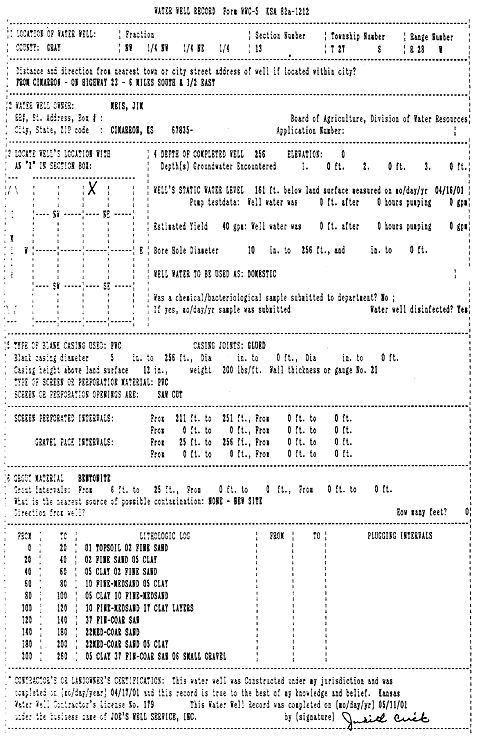 Koehn, Verle | 124 ft. | 122 ft. | Domestic | Plugged | 27-Oct-1999 | Scan | ||