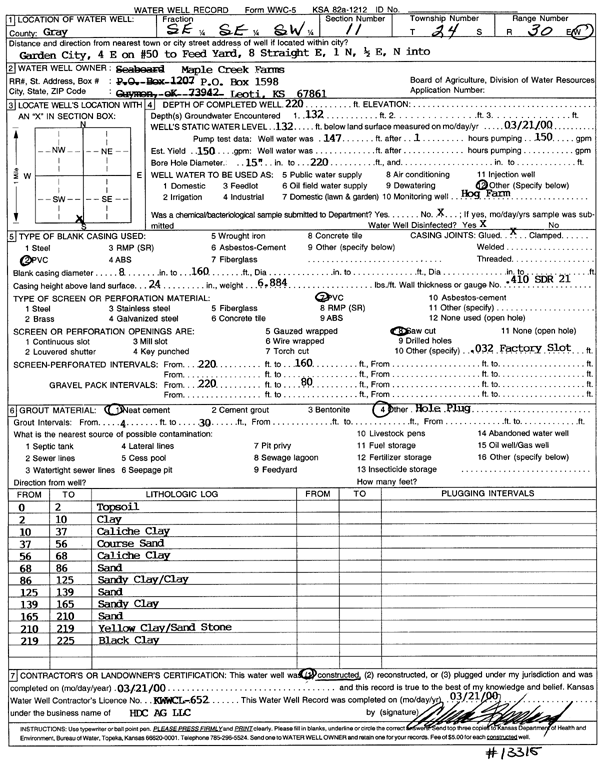 Minter-Wilson Drilling Co, Inc./ Garden City Coop | 240 ft. | 145 ft. | 100 gpm. | Domestic | Garden City Coop | Constructed | 03-Jan-1997 | |