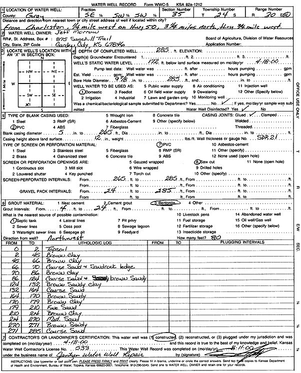 Steve Irsik and Sons | 263 ft. | 159 ft. | 30 gpm. | Domestic | Constructed | 24-Dec-1988 | ||