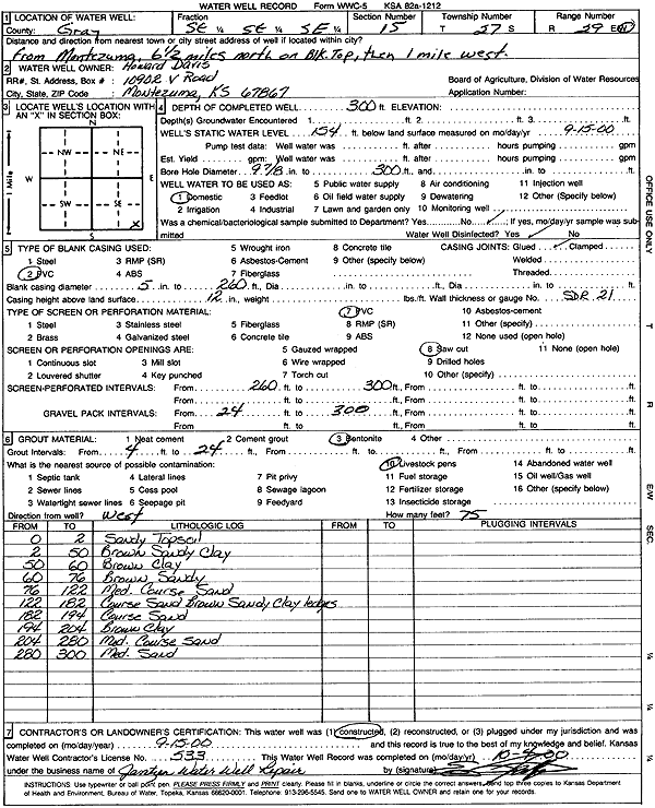 Davis, Howard | 165 ft. | 122 ft. | Domestic | Plugged | 19-Sep-2000 | Scan | ||