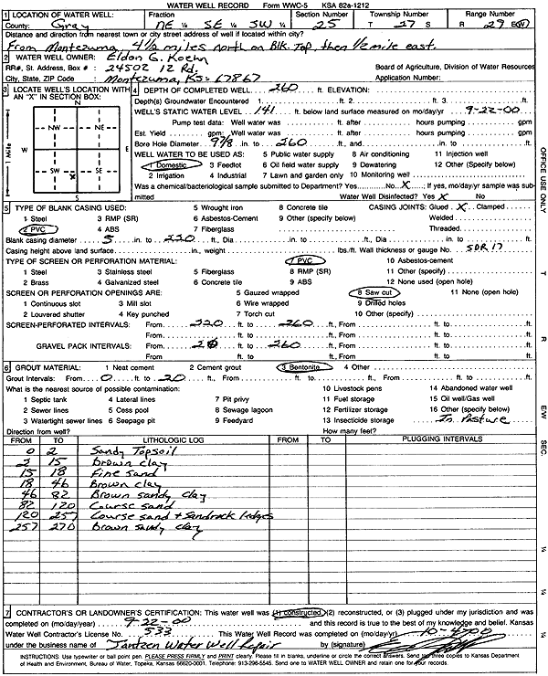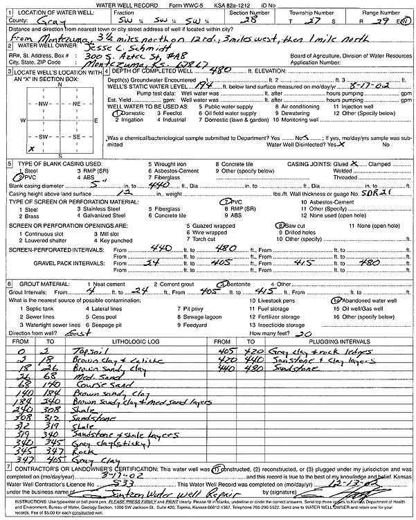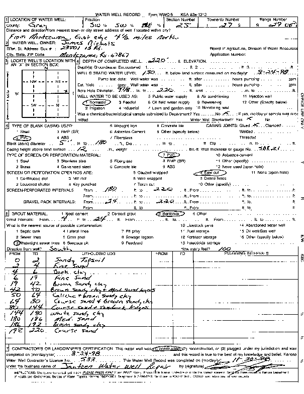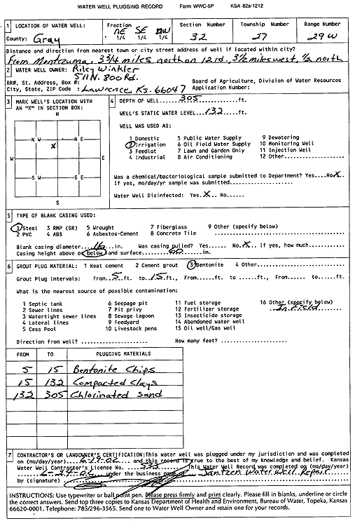 Riley Winkler | 305 ft. | 132 ft. | Irrigation | Plugged | 19-Jun-2002 | Scan | ||