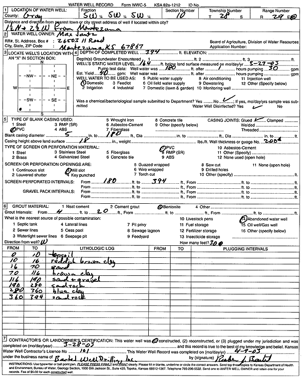 Unruh, Denton | 188 ft. | 127 ft. | 5 gpm. | Domestic | Constructed | 15-May-1981 | ||