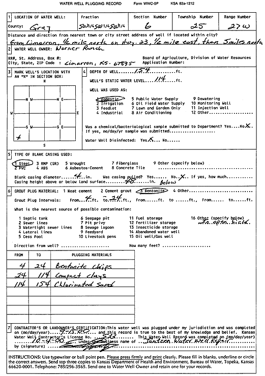 Sara Lynn and Charles Warner Trust | 169 ft. | 90 ft. | 60 gpm. | Domestic, Livestock | Constructed | 15-Jun-1978 | ||