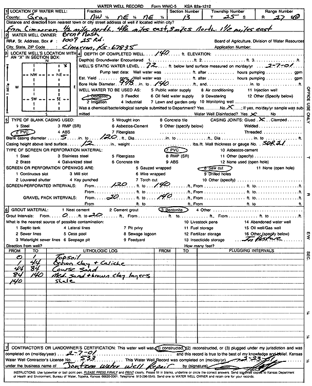 Niemer, Flora | 218 ft. | 110 ft. | 40 gpm. | Domestic | Constructed | 20-Mar-1997 | ||