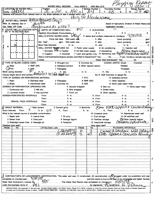 Grain Growers Cooperative | 60 ft. | Recovery/Soil Vapor Extraction/Soil Vent | VEW 1 | Plugged | 30-Sep-1998 | Scan | ||