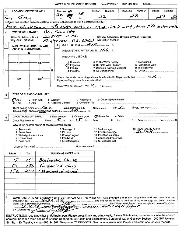 Schmidt, Ben | 210 ft. | 156 ft. | Irrigation | Plugged | 26-Apr-2004 | Scan | ||