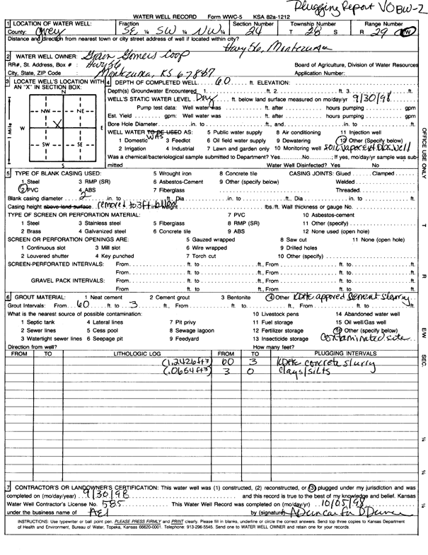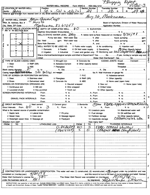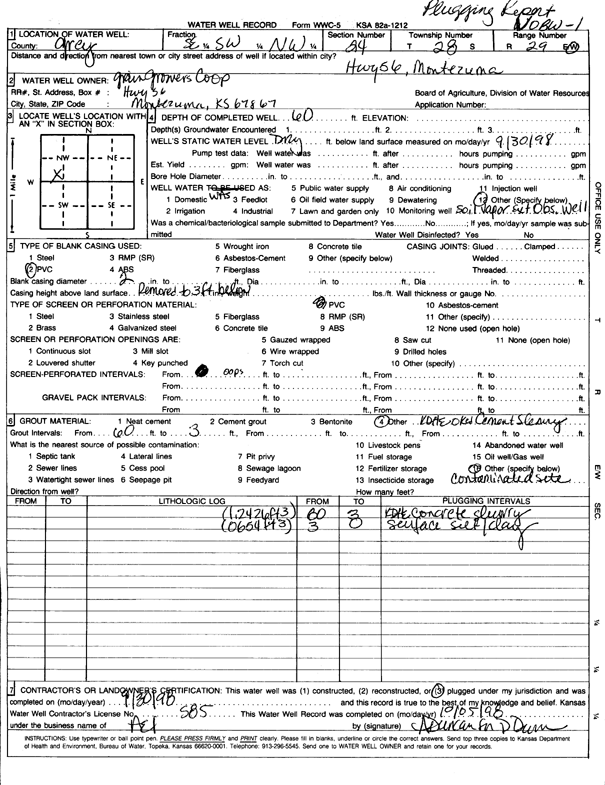 Grain Growers Cooperative | 60 ft. | Monitoring well/observation/piezometer | VOBW 2 | Plugged | 30-Sep-1998 | Scan | ||