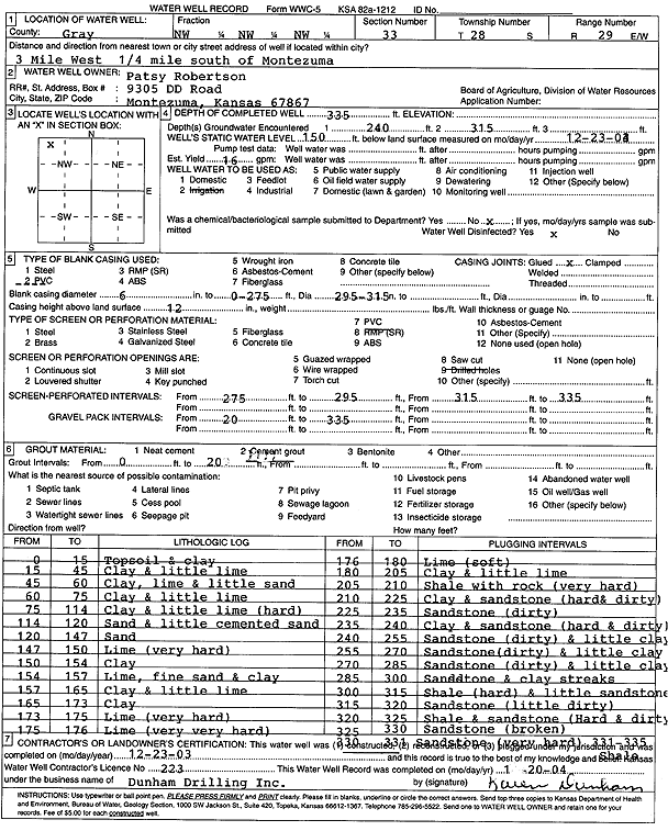 Robertson, Patsy | 335 ft. | 150 ft. | 16 gpm. | Irrigation | Constructed | 23-Dec-2003 | Scan | |