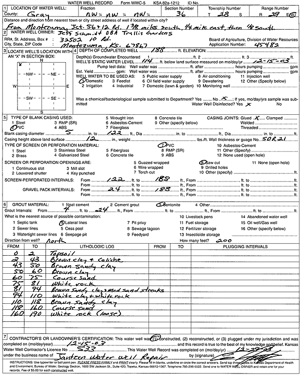 Koehn, Mike | 153 ft. | 65 ft. | 40 gpm. | Domestic | Constructed | 13-Dec-1996 | ||