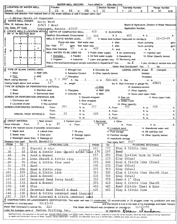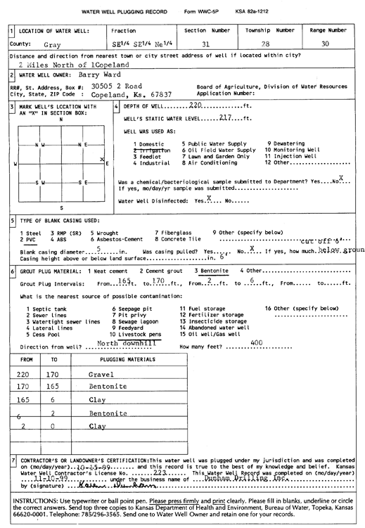 Ward, Barry | 220 ft. | 217 ft. | Domestic | Plugged | 15-Oct-1999 | Scan | ||