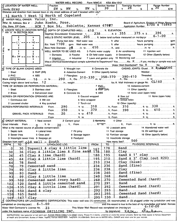 Valor Inc. | 410 ft. | 205 ft. | 1100 gpm. | Irrigation | Constructed | 01-Jun-2000 | Scan | |