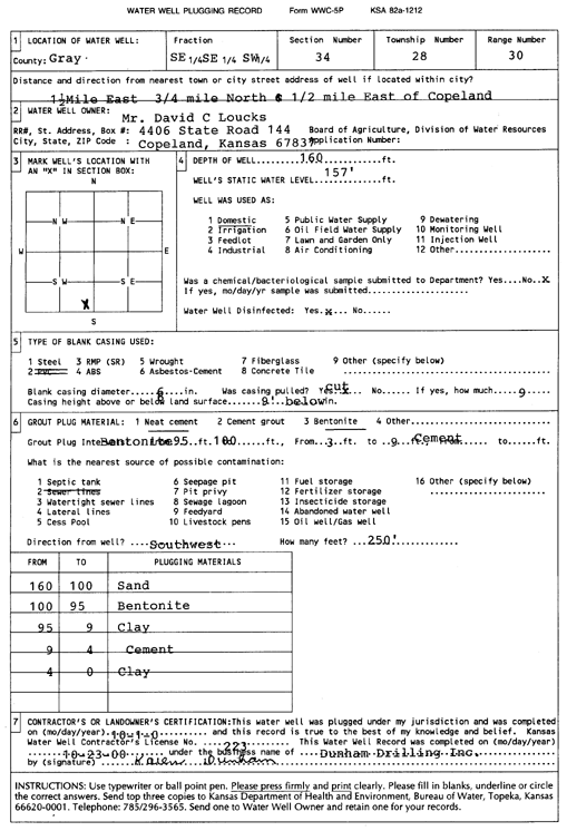 Loucks, David C | 160 ft. | 157 ft. | Domestic | Plugged | 01-Oct-2000 | Scan | ||