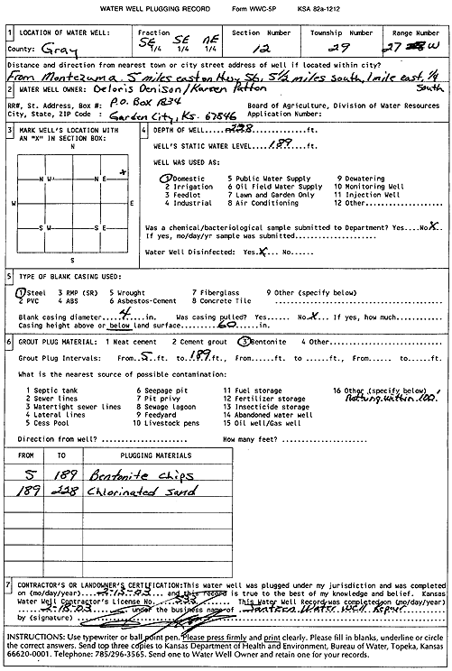 Denison, Deloris/Patton, Karren | 228 ft. | 189 ft. | Domestic | Plugged | 13-Feb-2003 | Scan | ||