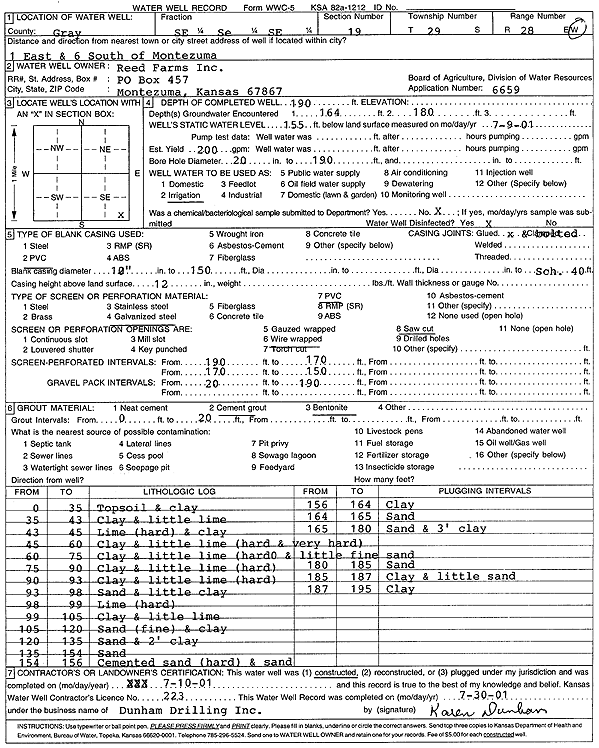 Reed Farms, Inc. | 190 ft. | 155 ft. | 200 gpm. | Irrigation | Constructed | 10-Jul-2001 | Scan | |