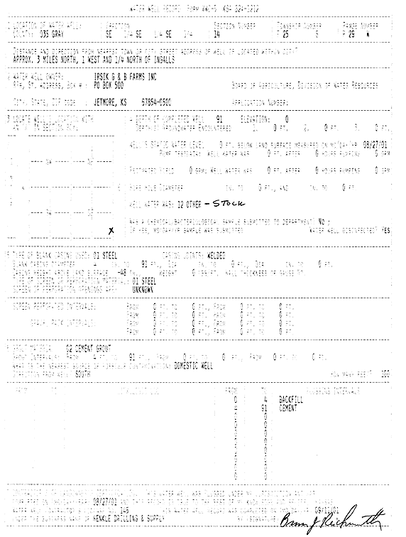 Irsik G and B Farms Inc. | 91 ft. | Domestic, Livestock | Plugged | 27-Aug-2001 | Scan | |||