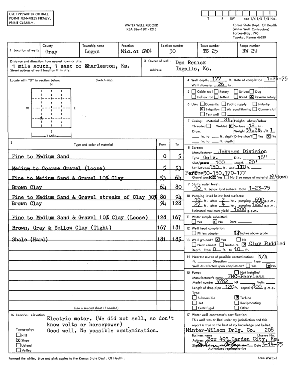 Renick, Don | 177 ft. | 10 ft. | 1200 gpm. | Irrigation | Constructed | 26-Jan-1975 | Scan | |