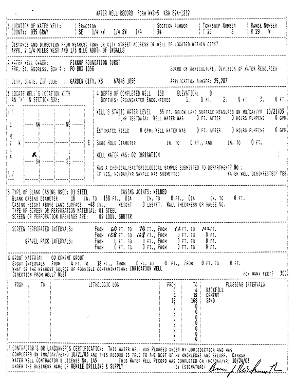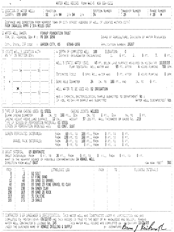 Finnup Foundation Trust | 168 ft. | 35 ft. | Irrigation | Plugged | 21-Oct-2003 | Scan | ||