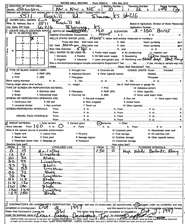 Box, Curt | 150 ft. | Heat Pump (Closed Loop/Disposal), Geothermal | Constructed | 02-Oct-1997 | Scan | |||